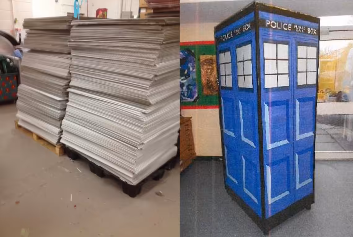 Board24 Preston donates sheets of cardboard to SAMS (Scrap Art Material Store) for the benefit of local grass roots community groups.