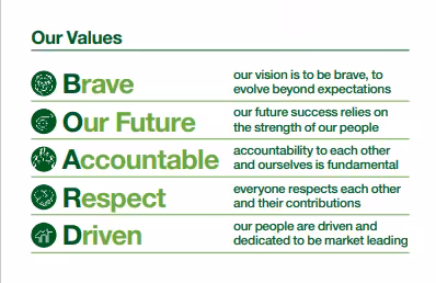 “These values underpin everything that we do and will ensure our focus remains clear on the roles we all play in the team to deliver growth and success.”